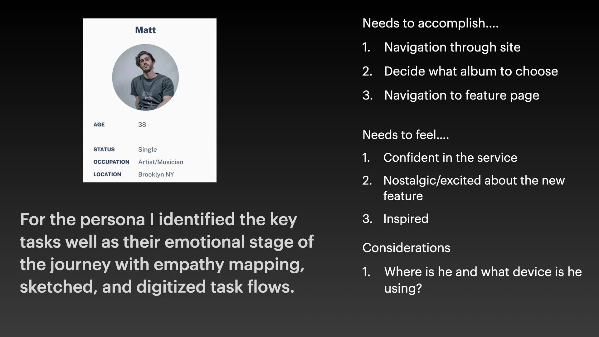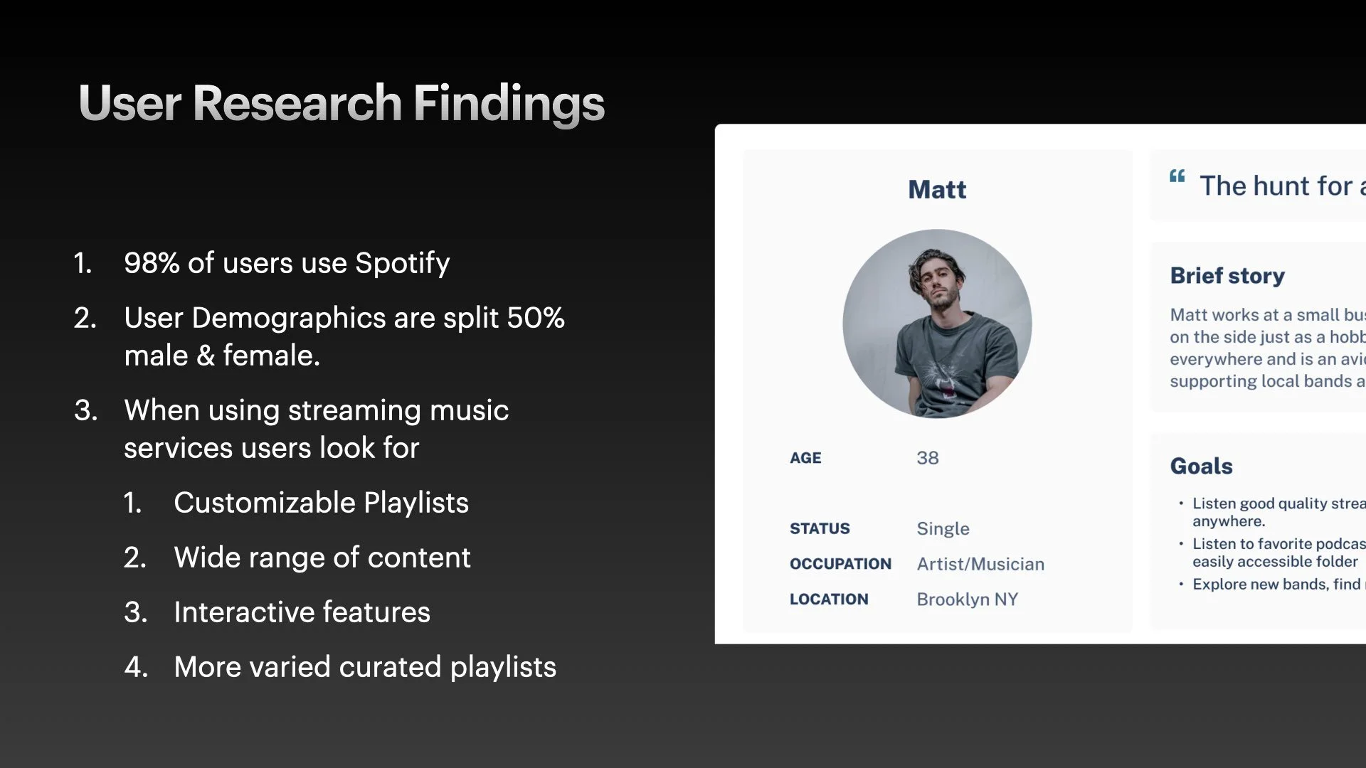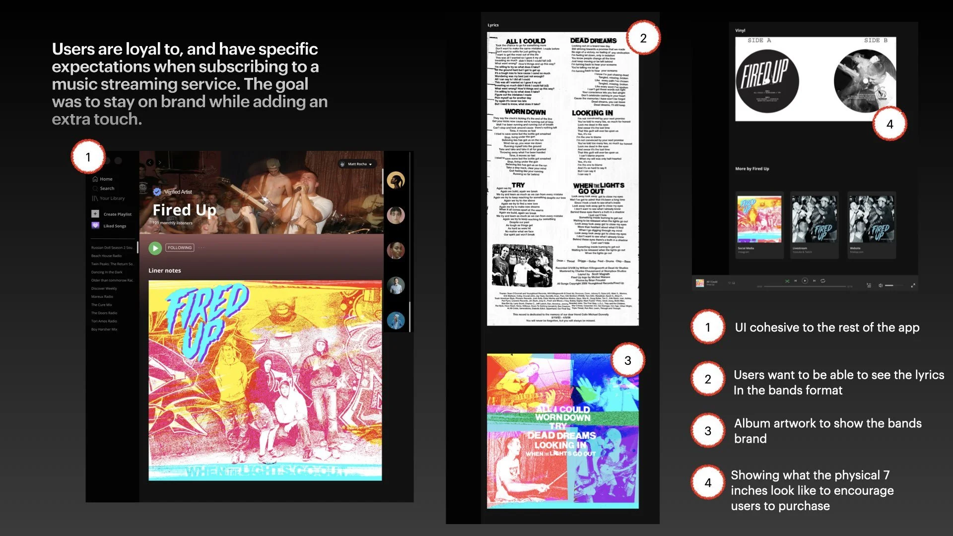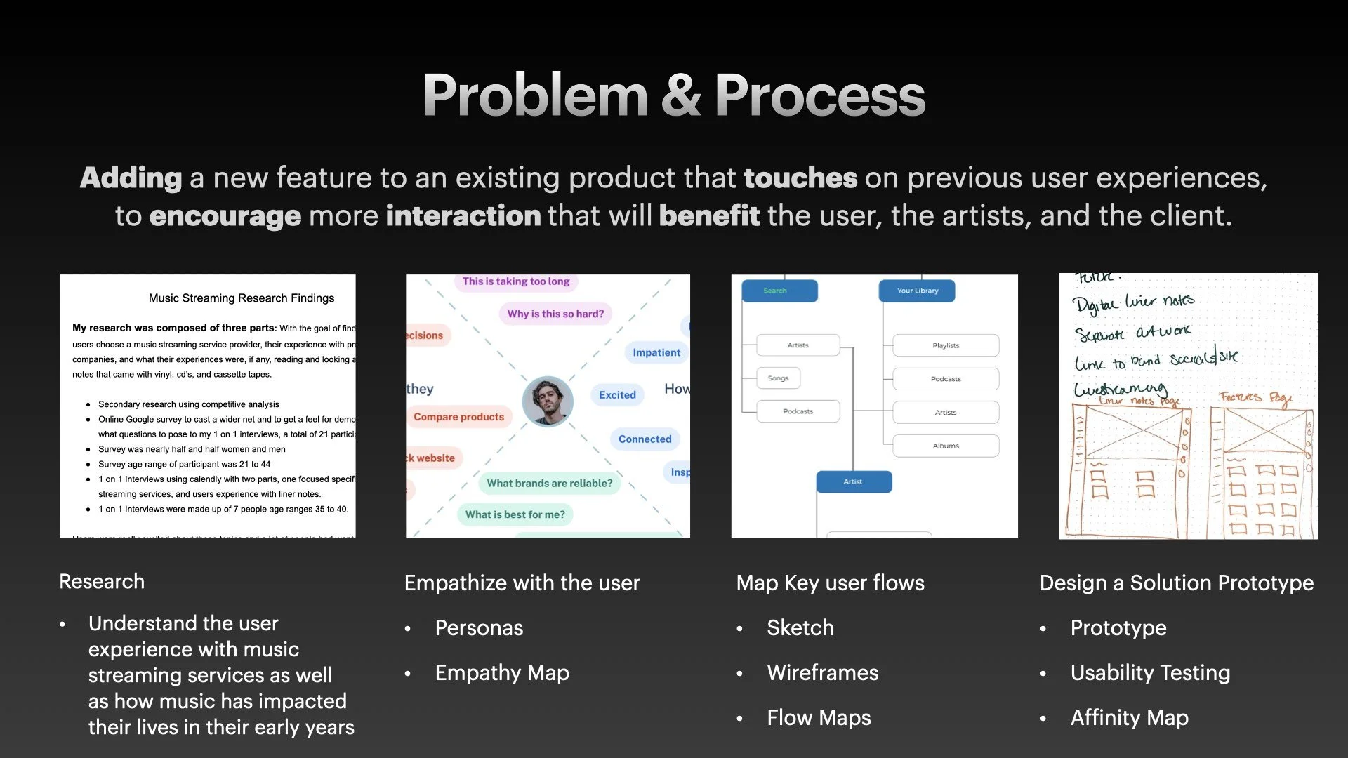 From the survey analysis, I identified unmet user needs and what an ideal Liner Notes feature would accomplish.